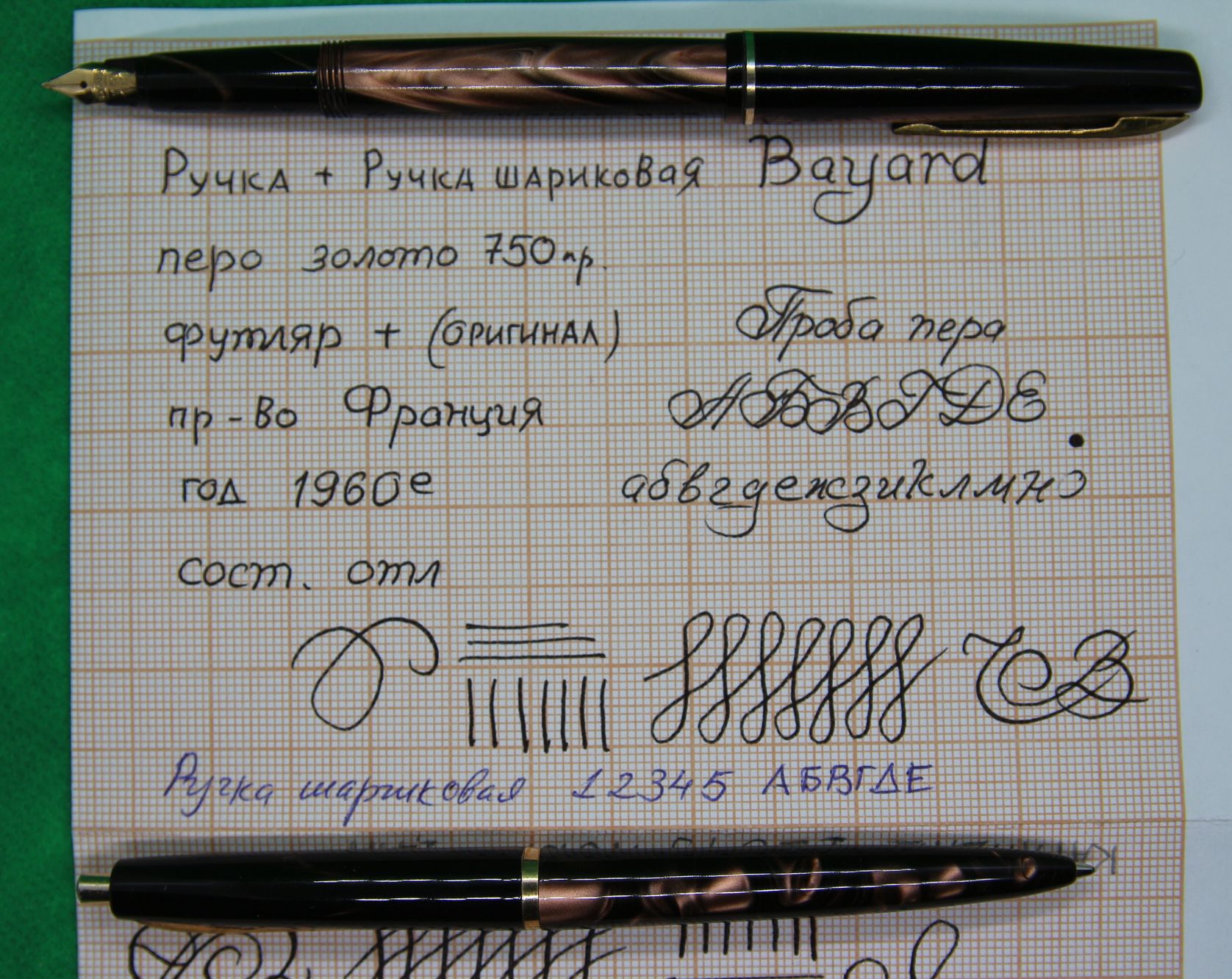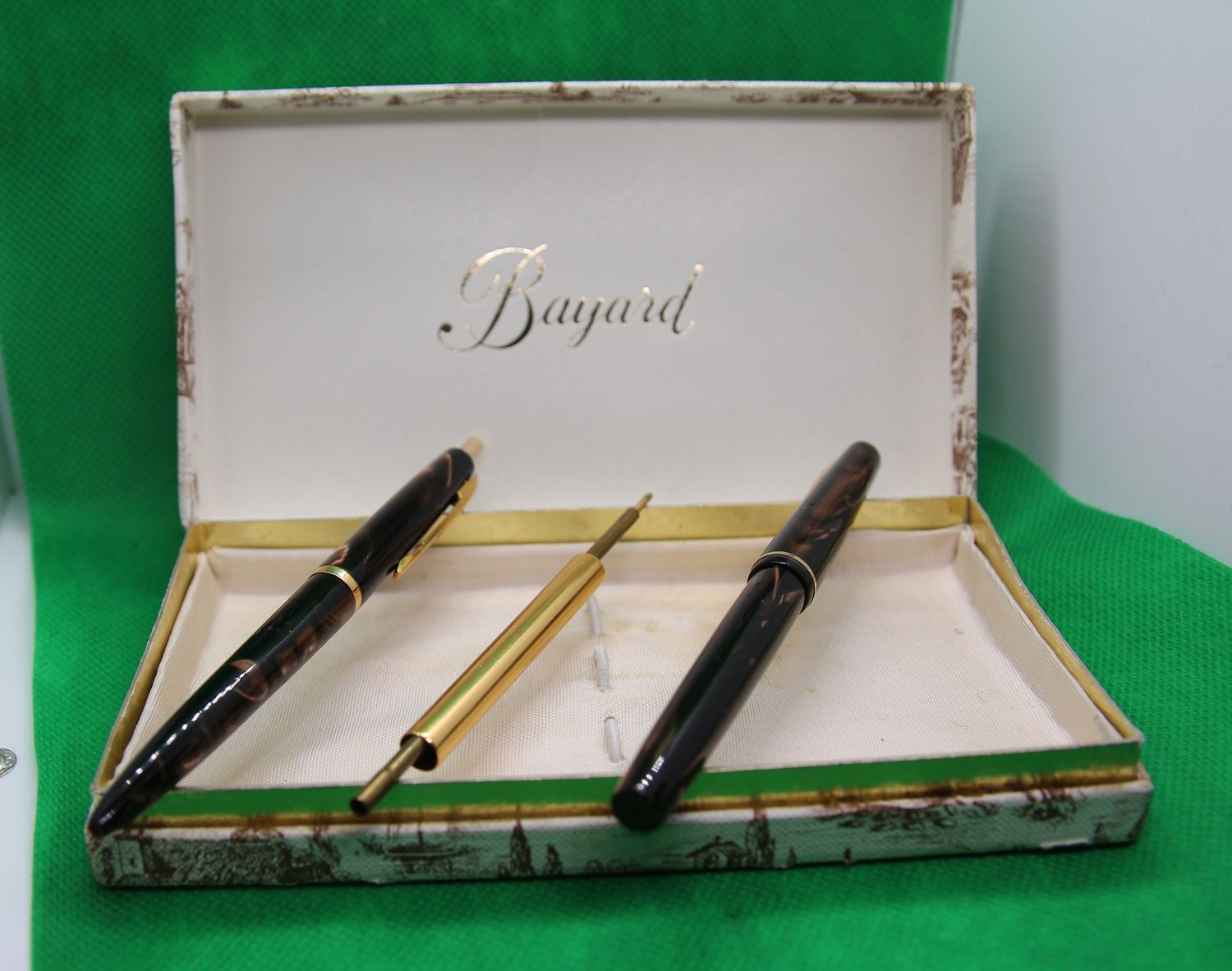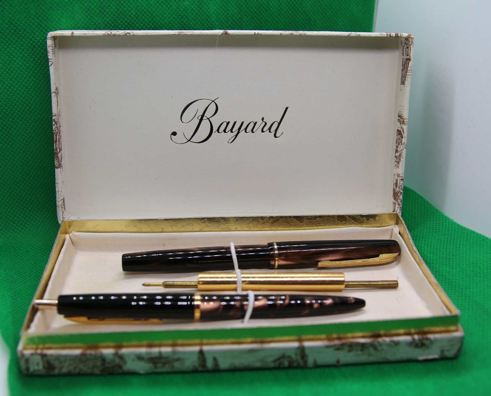 Набор Bayard, золотое перо 750 пробы, Франция 60-е годы, картриджная перьевая и шариковая ручки