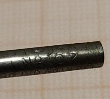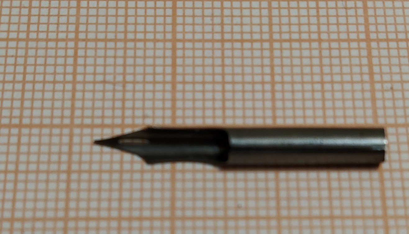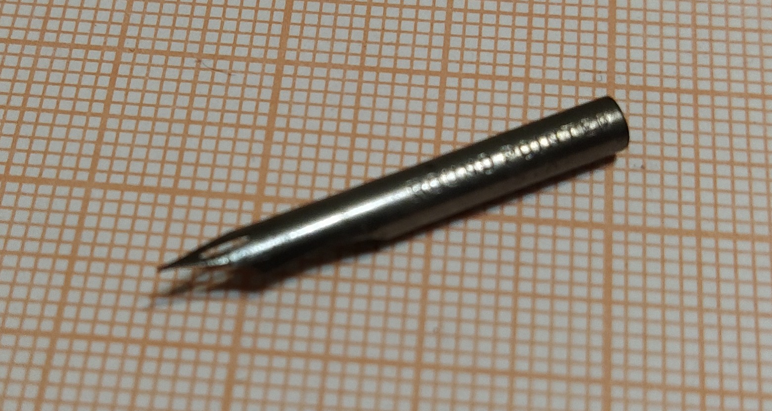 Маленькое тонкое перо с круглым основанием, видимо, ранняя версия. XF