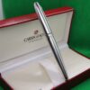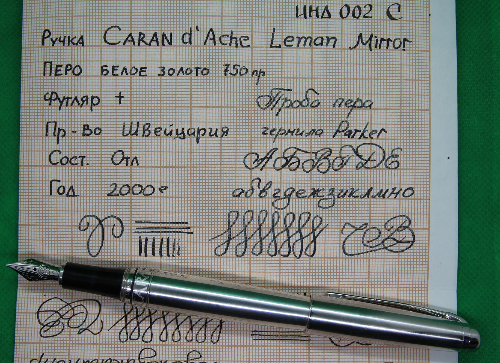 Caran D’Ache Leman Mirror — корпус покрыт серебром , перо М из белого золота 750 пробы. Сделано в Швейцарии в 2000-х
