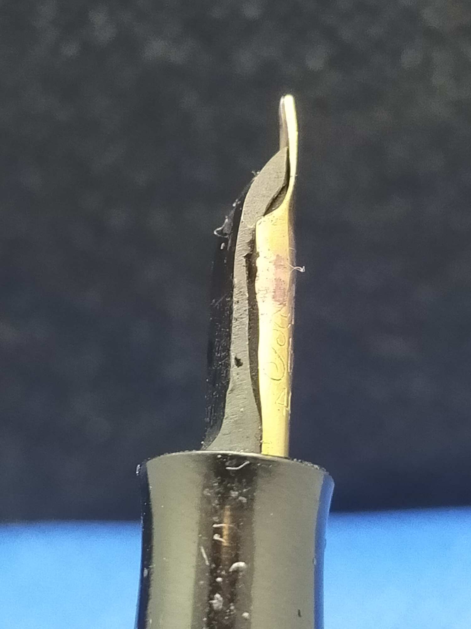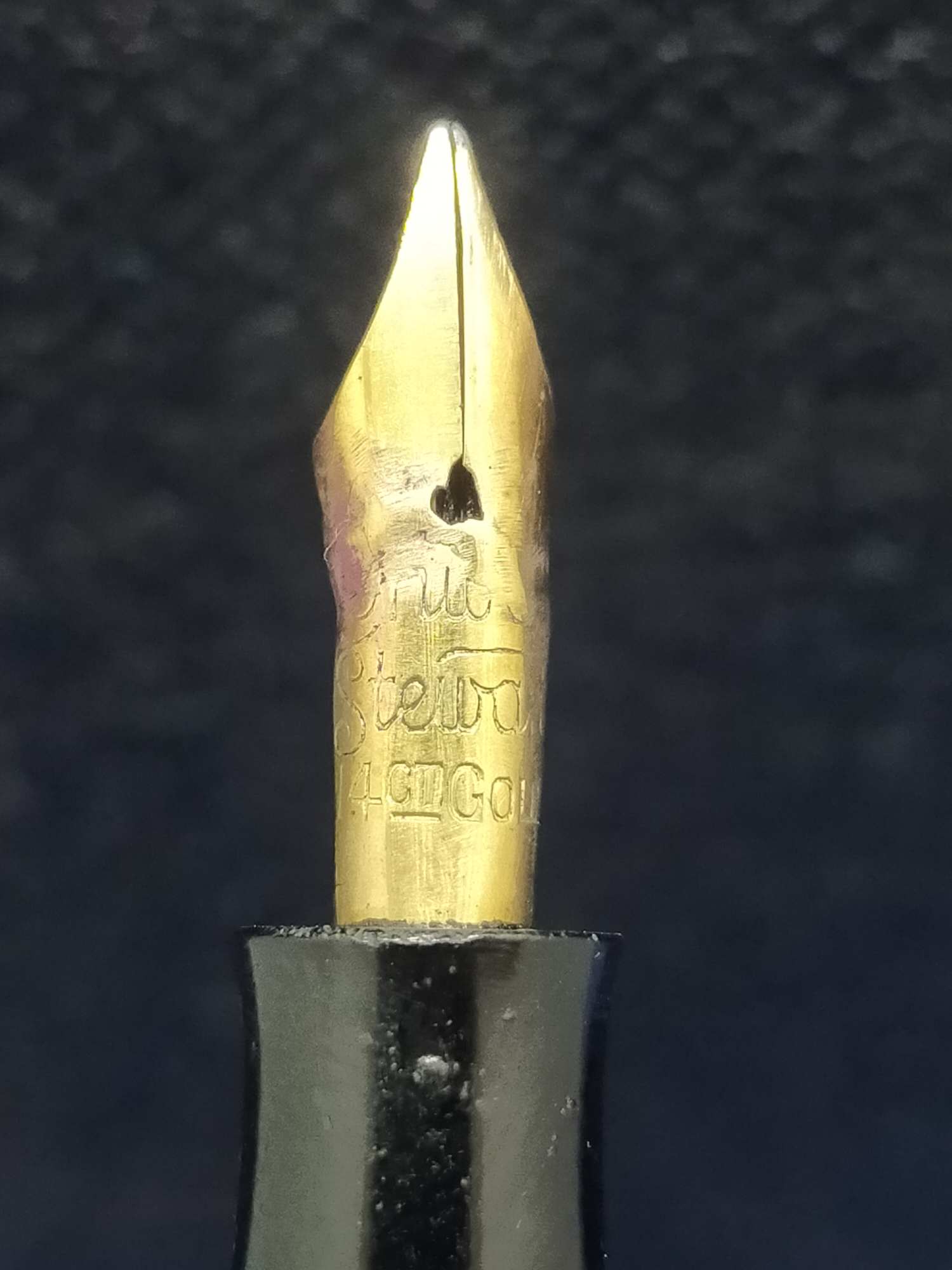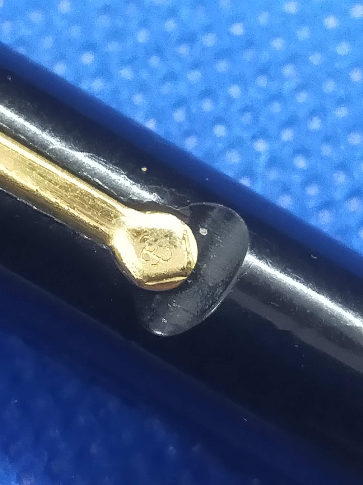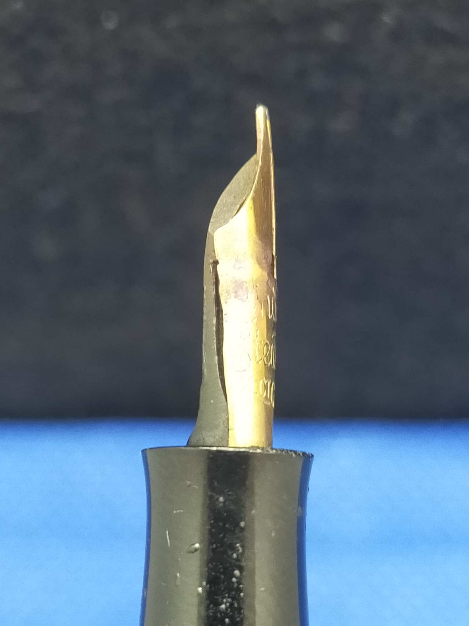 Ручка с переваренным золотым пером 55 пробы и залитым целлулоидом деформированным колпачком, см фото. Но рабочая, пишет относительно неплохо.