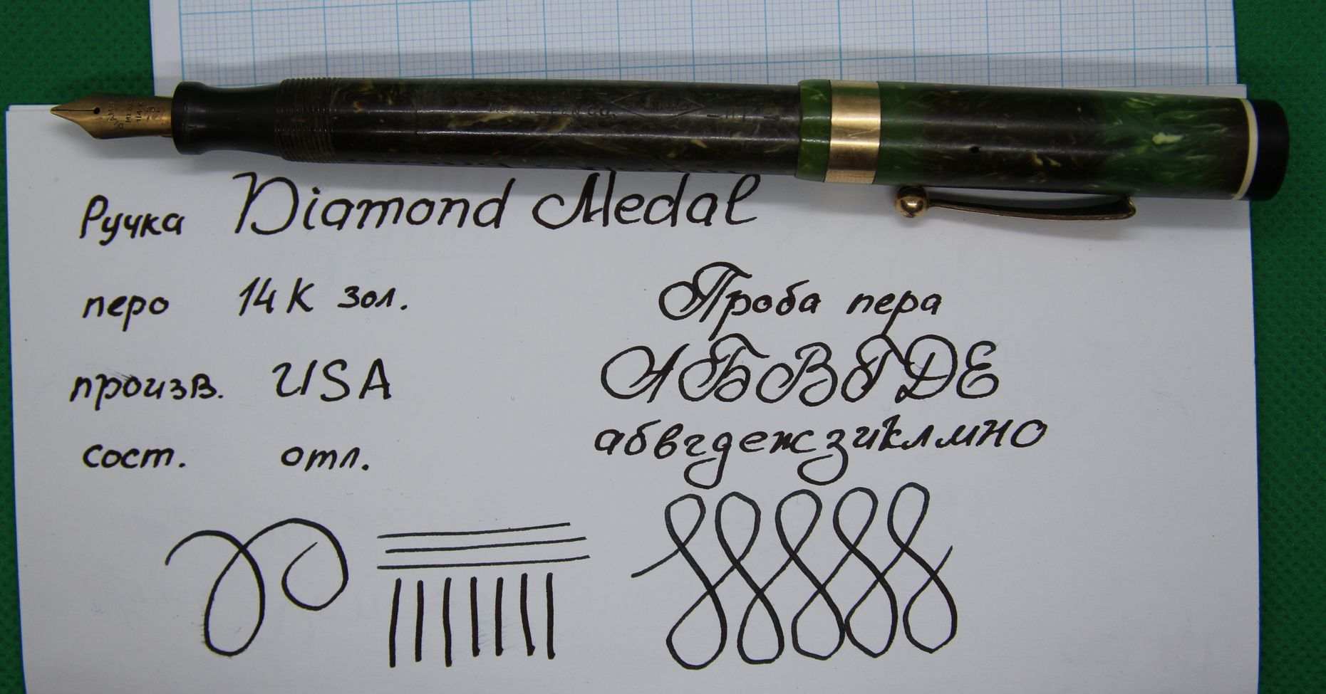 Diamond Medal, золотое перо 585 пробы, 20-е годы США, перо крупное, но без иридия, см фото, пишет хорошо, цена снижена