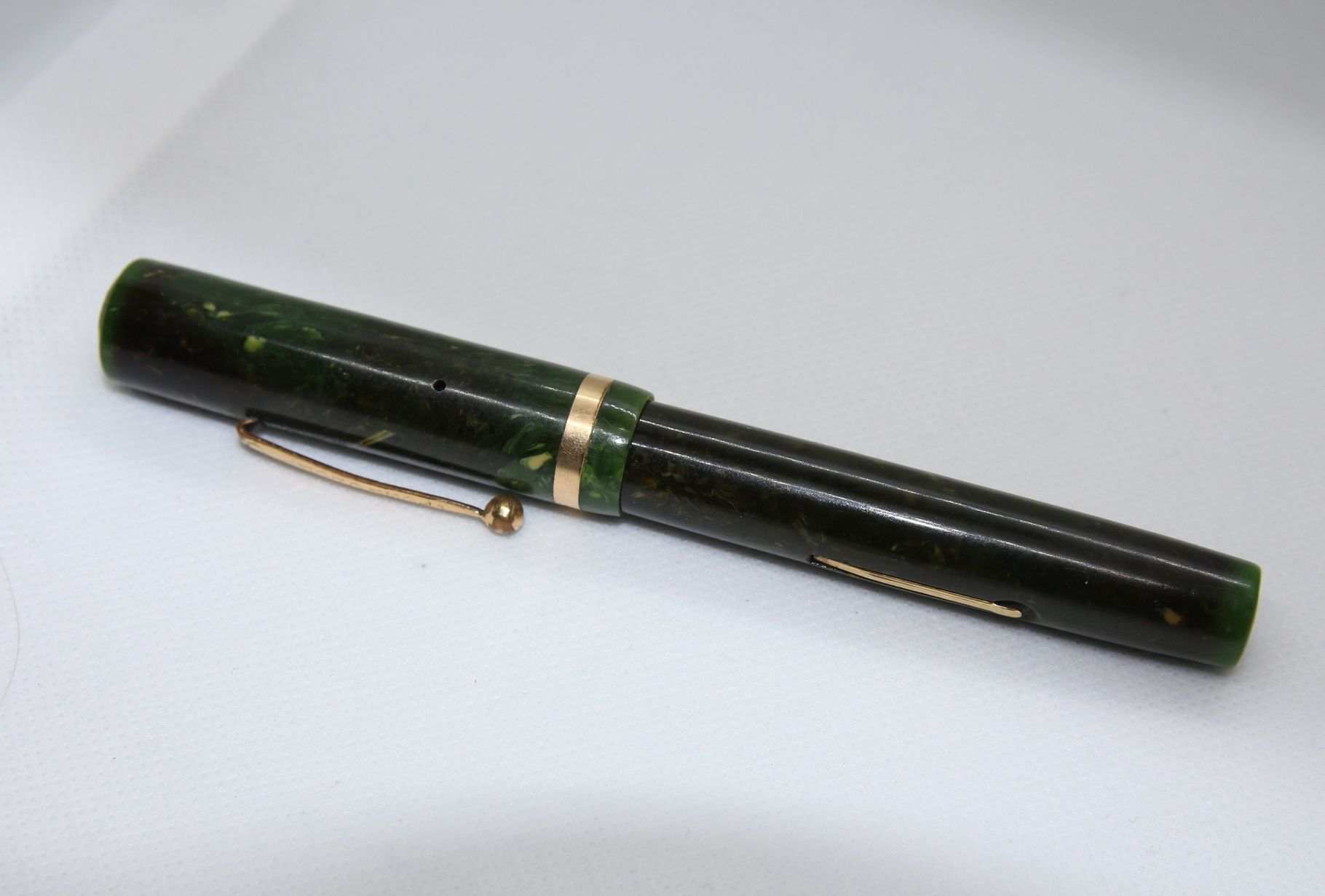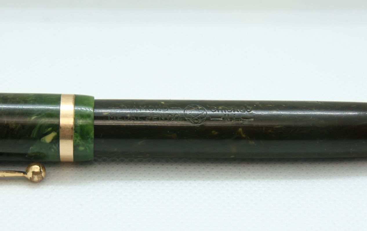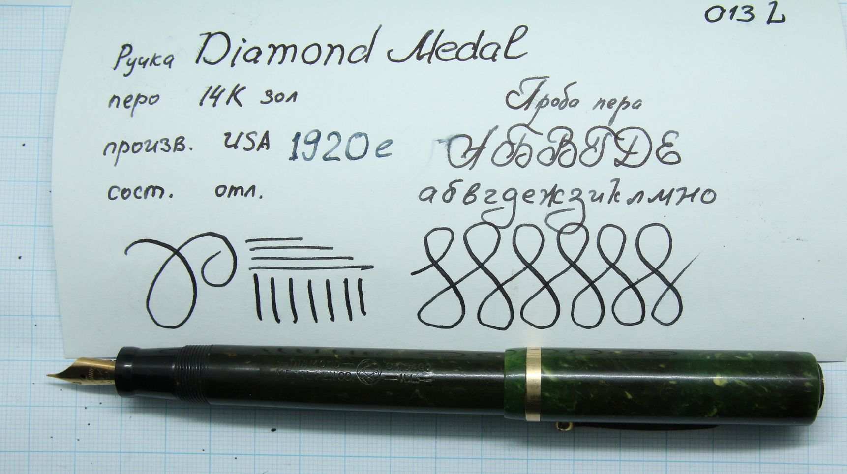 Diamond Medal, золотое перо 585 пробы, США 1930-е, крупная ручка с полугибким пером.