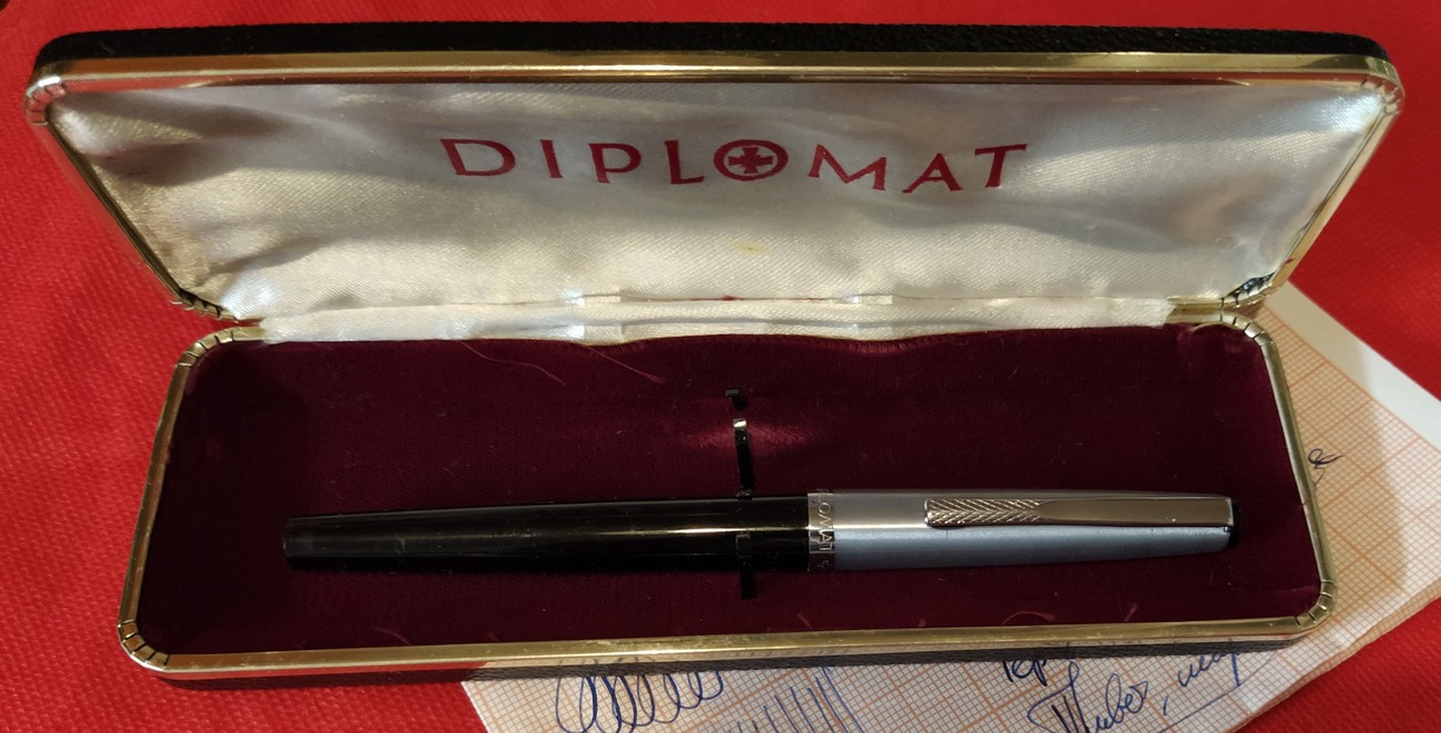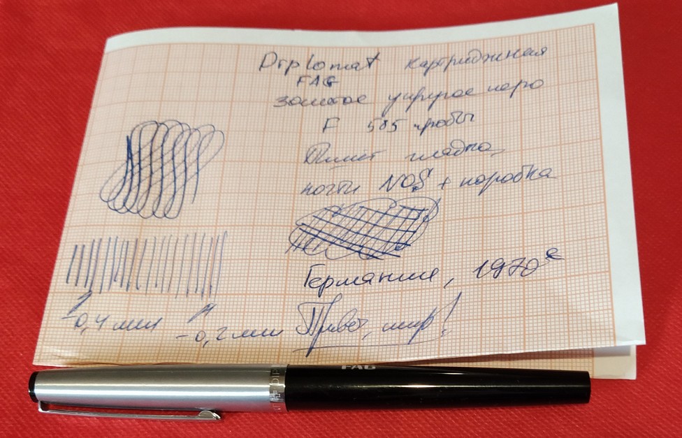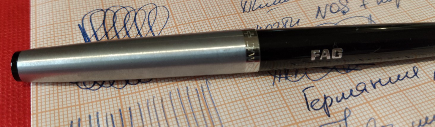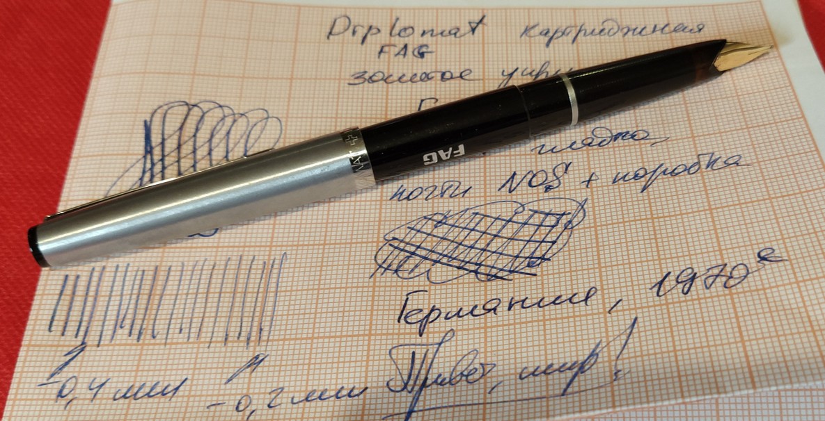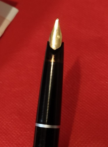 Упругое золотое перо F 585 пробы, картридж, Германия 1970е годы