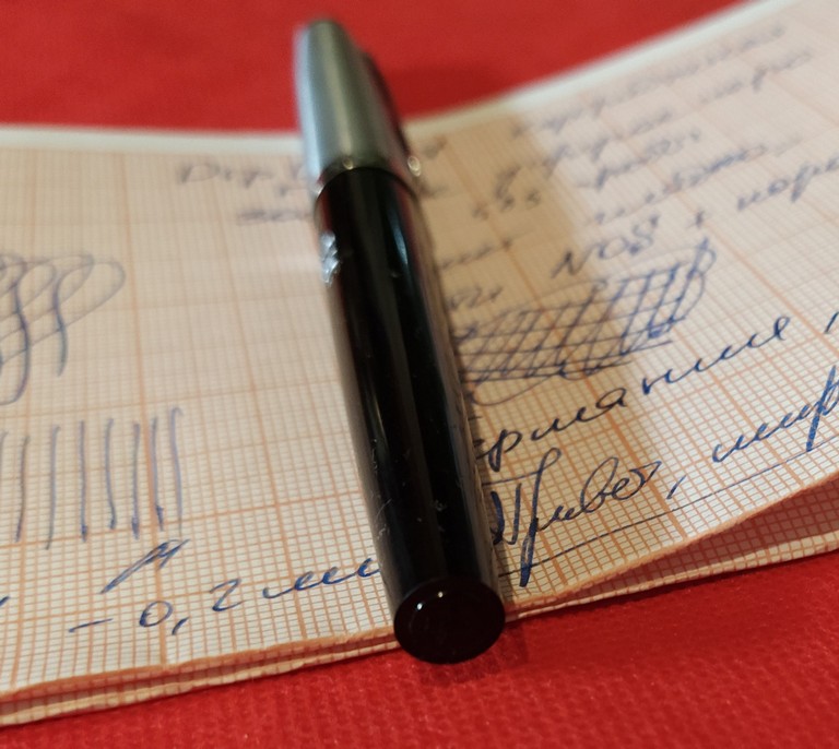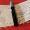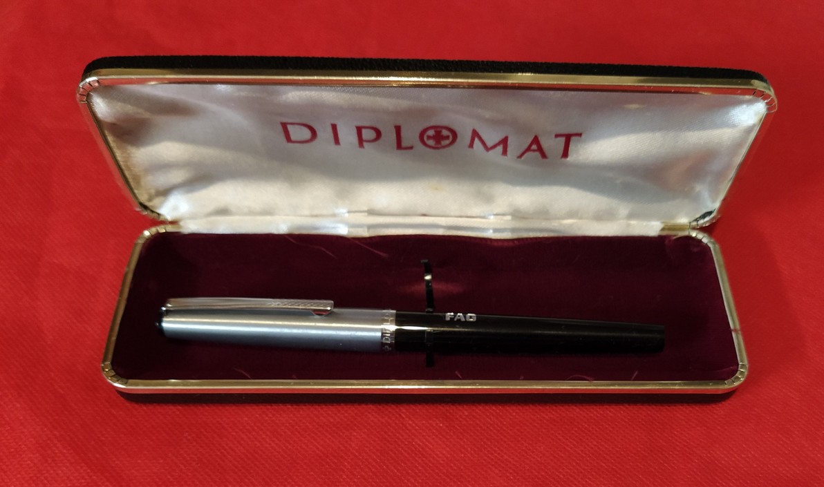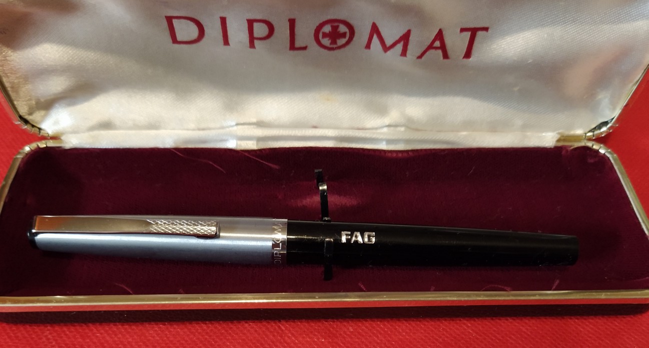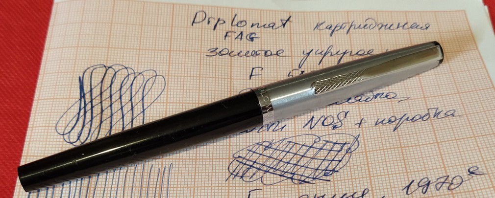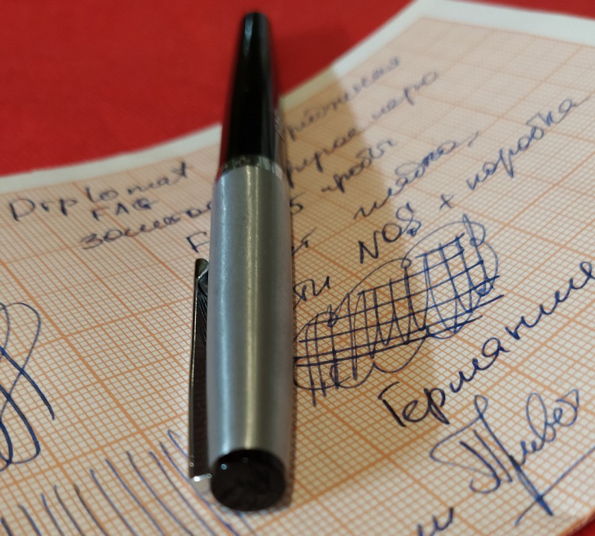 Упругое золотое перо F 585 пробы, картридж, Германия 1970е годы