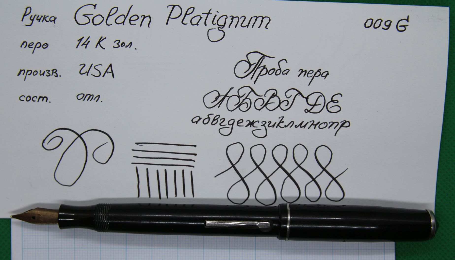 Golden Platignum, золотое перо 585 пробы, Англия 50-е годы, золотое перо стоит от другой ручки (США).