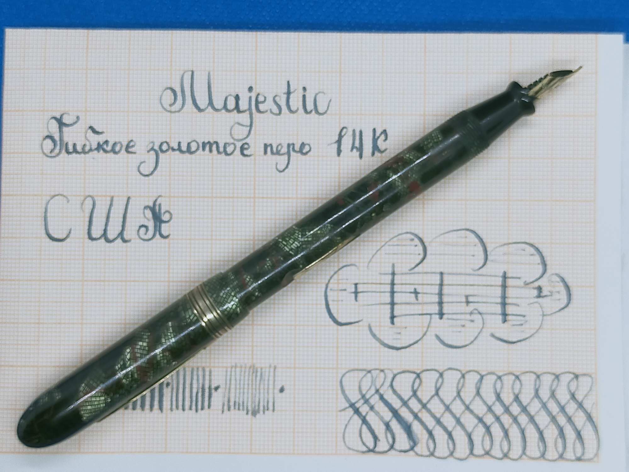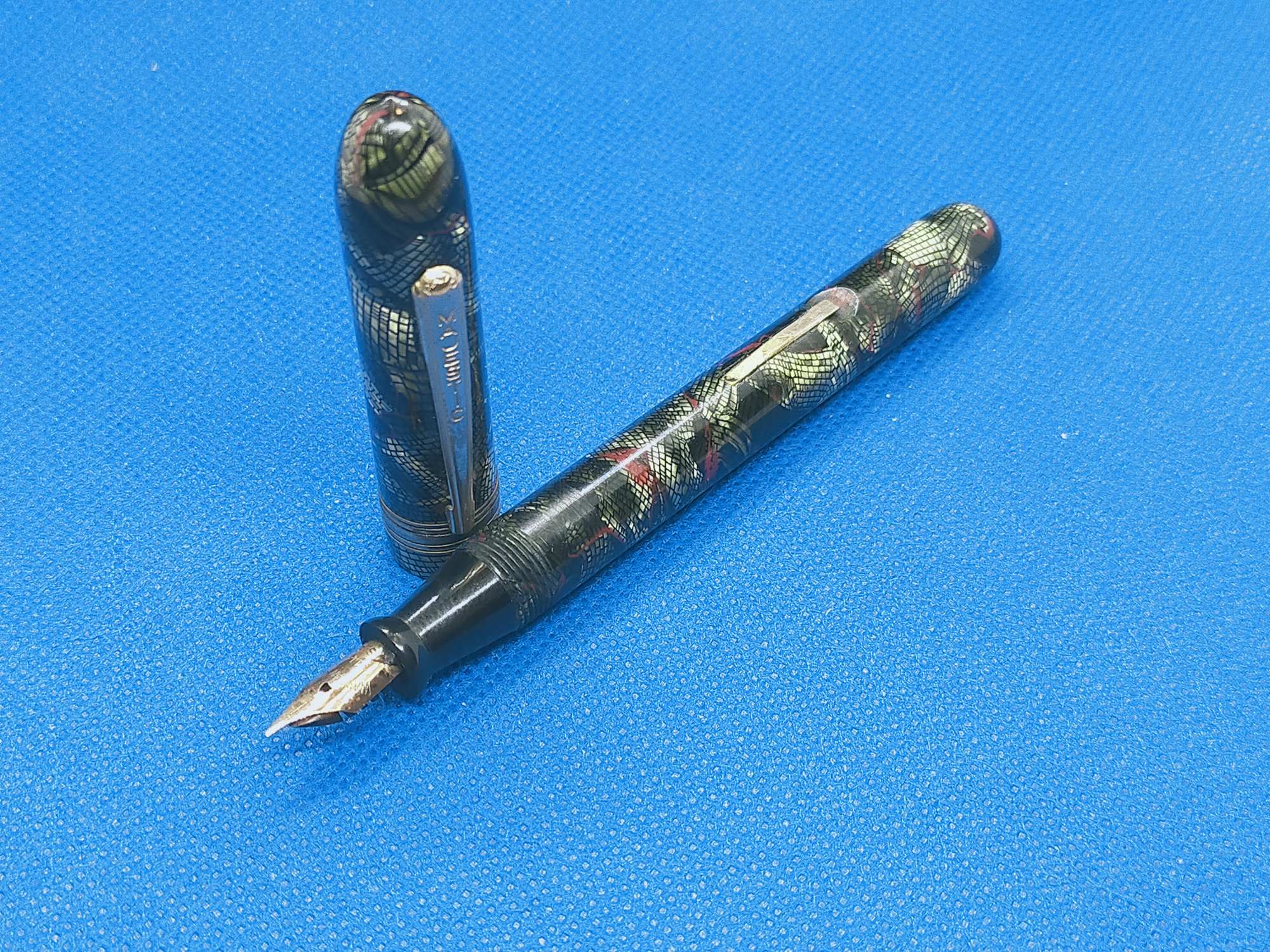 Целлулоидная ручка интересной расцветки, 1940-е, США, золотое перо 585 пробы