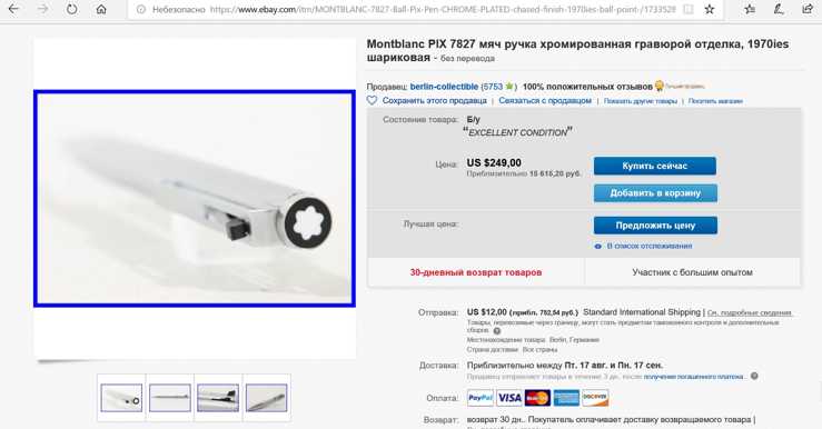 Очень качественная и стильная шариковая ручка от известного немецкого проиводителя. Примерно 1970-е, адаптирована под современные стержни waterman. Коллекционная, в отличном состоянии.