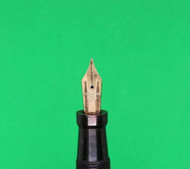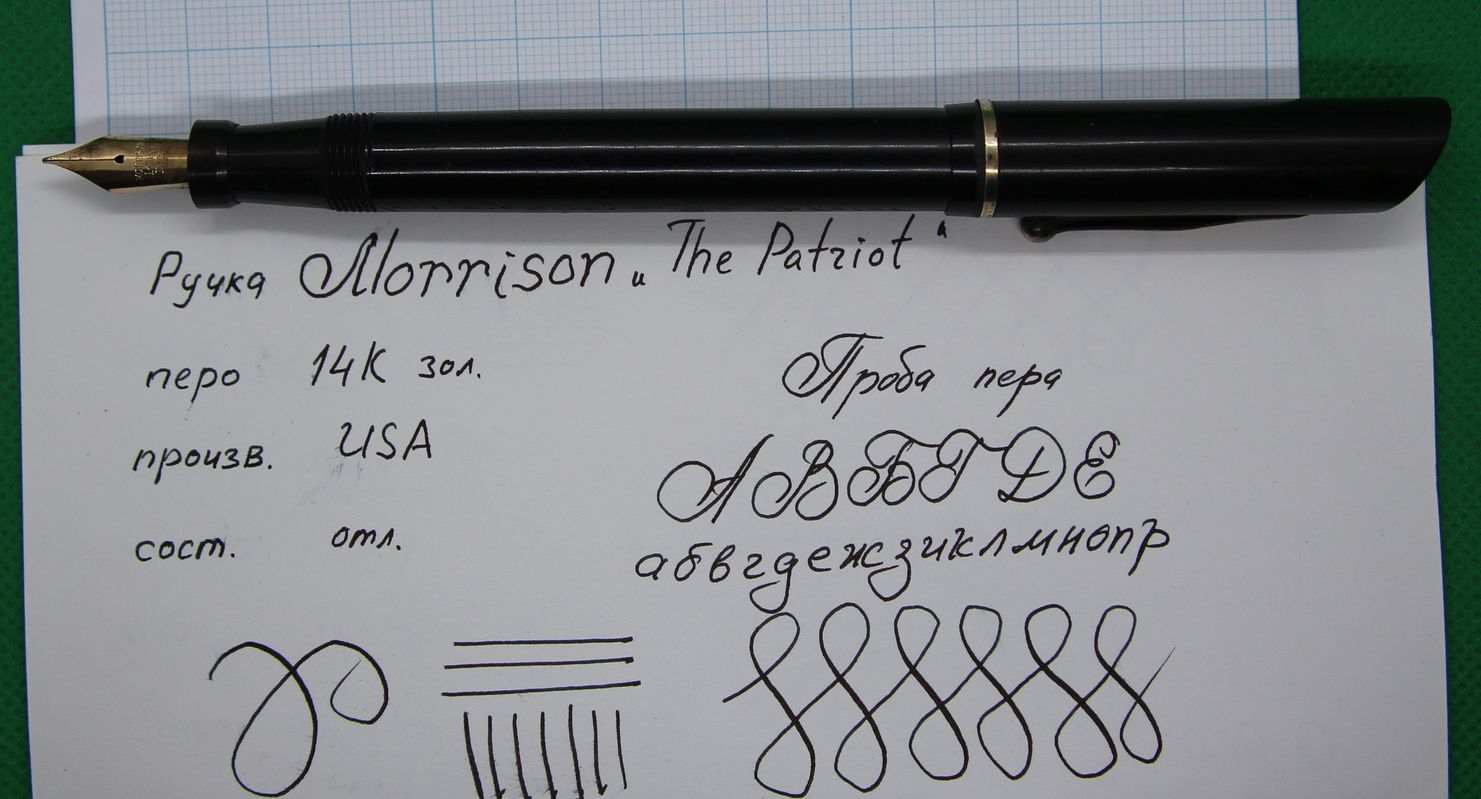 Morrison Patriot, золотое перо F, США 1940-е, крупная ручка. Система заправки — «пипетка», но может работать и как «наливайка».