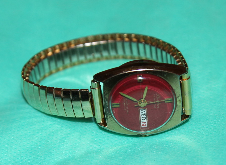 Часы примерно 60-х годов ХХ века, с автоподзаводом и индикацией дня недели. Отличный браслет на пружинах в комплекте.