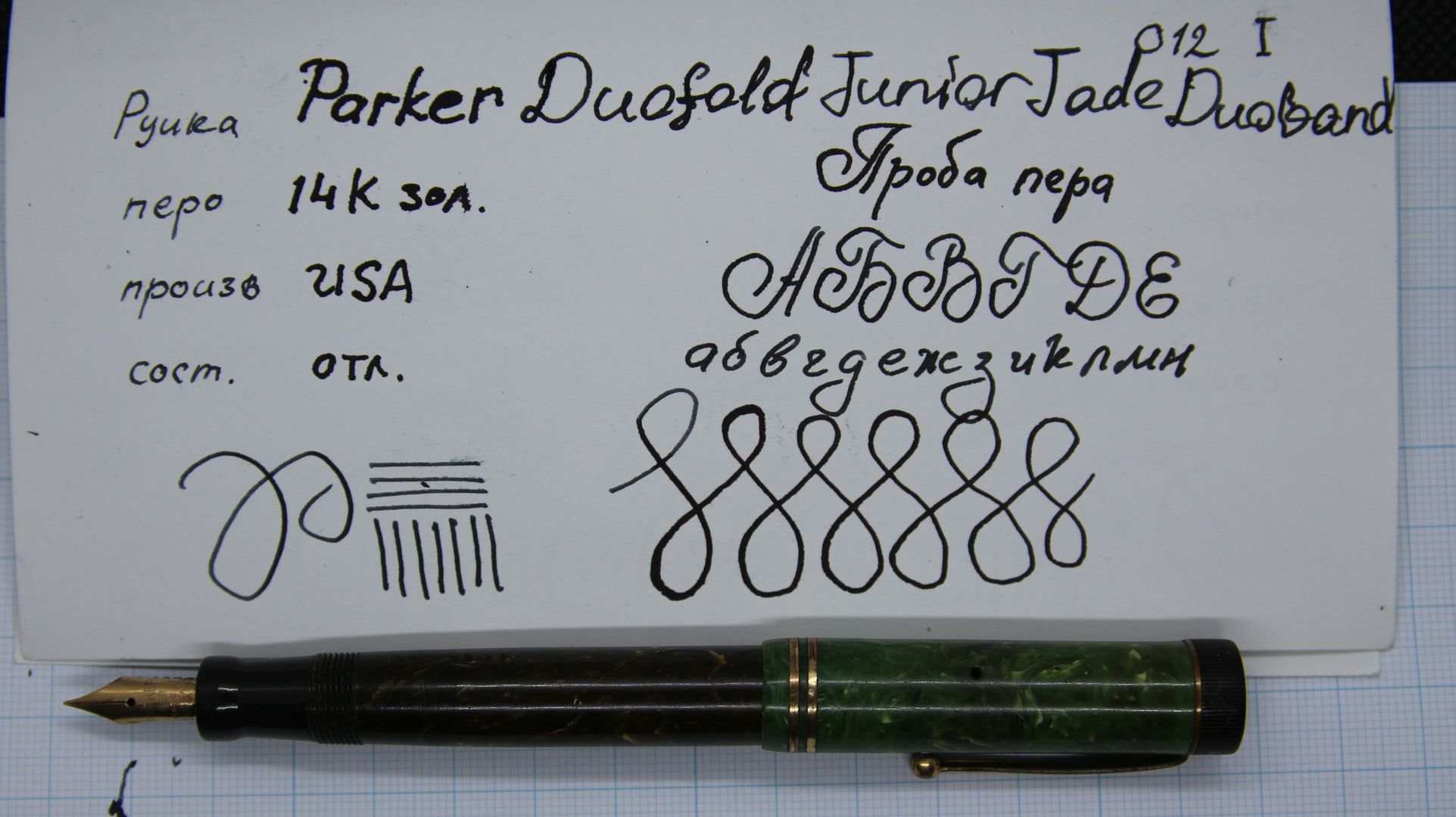 Parker Duofold Junior Jade Duoband , золотое перо M 585 пробы, 20-е годы США