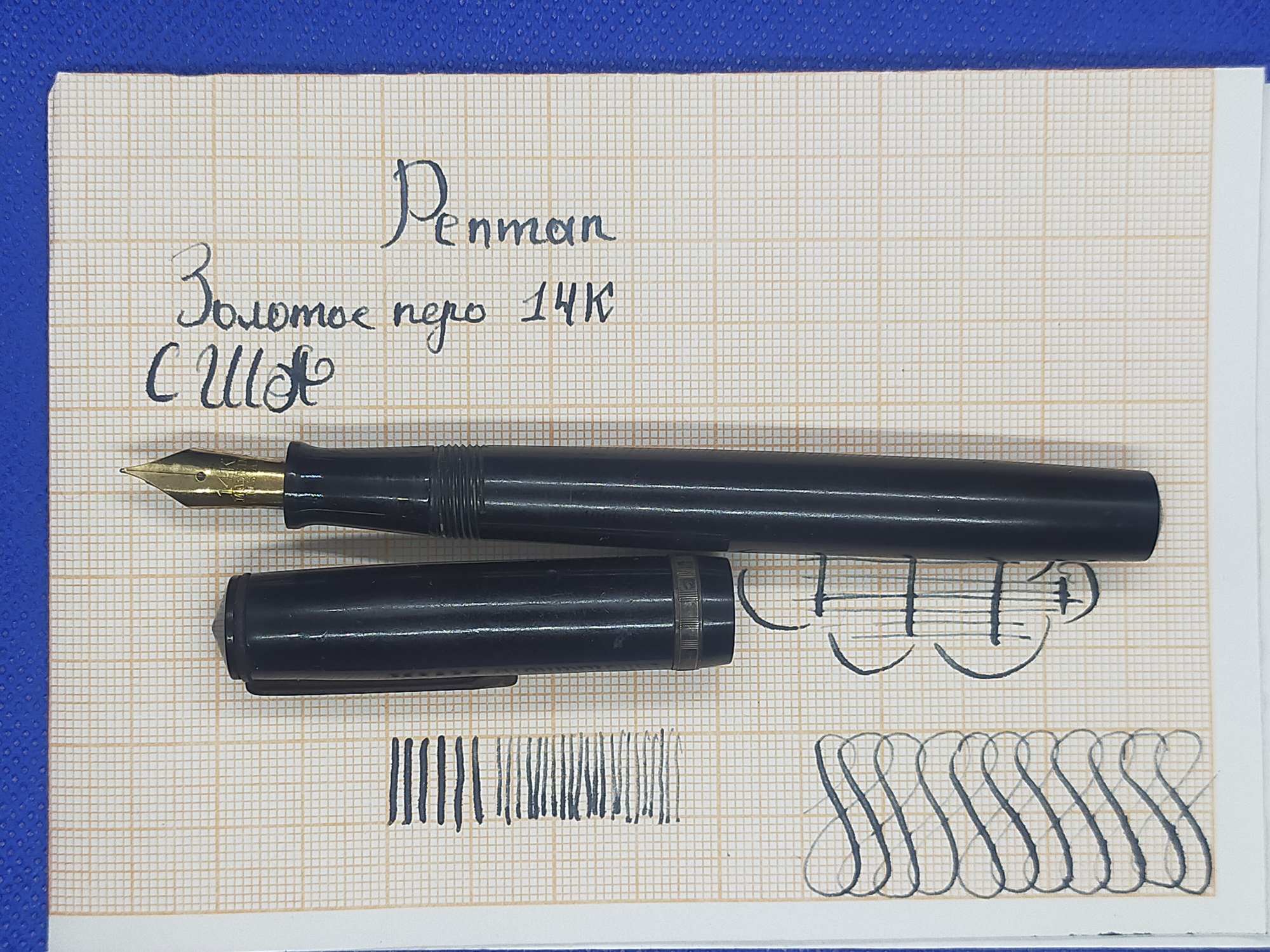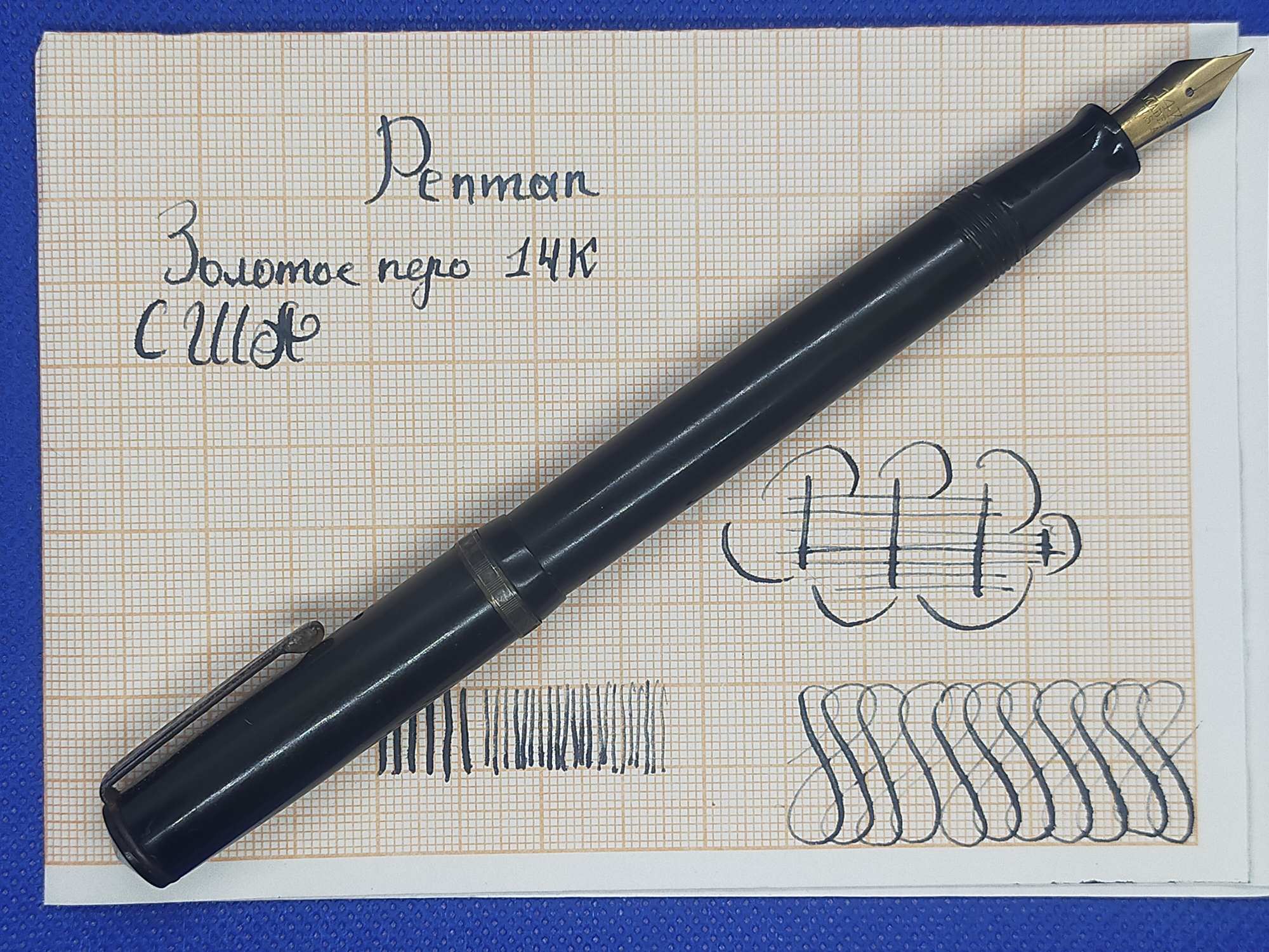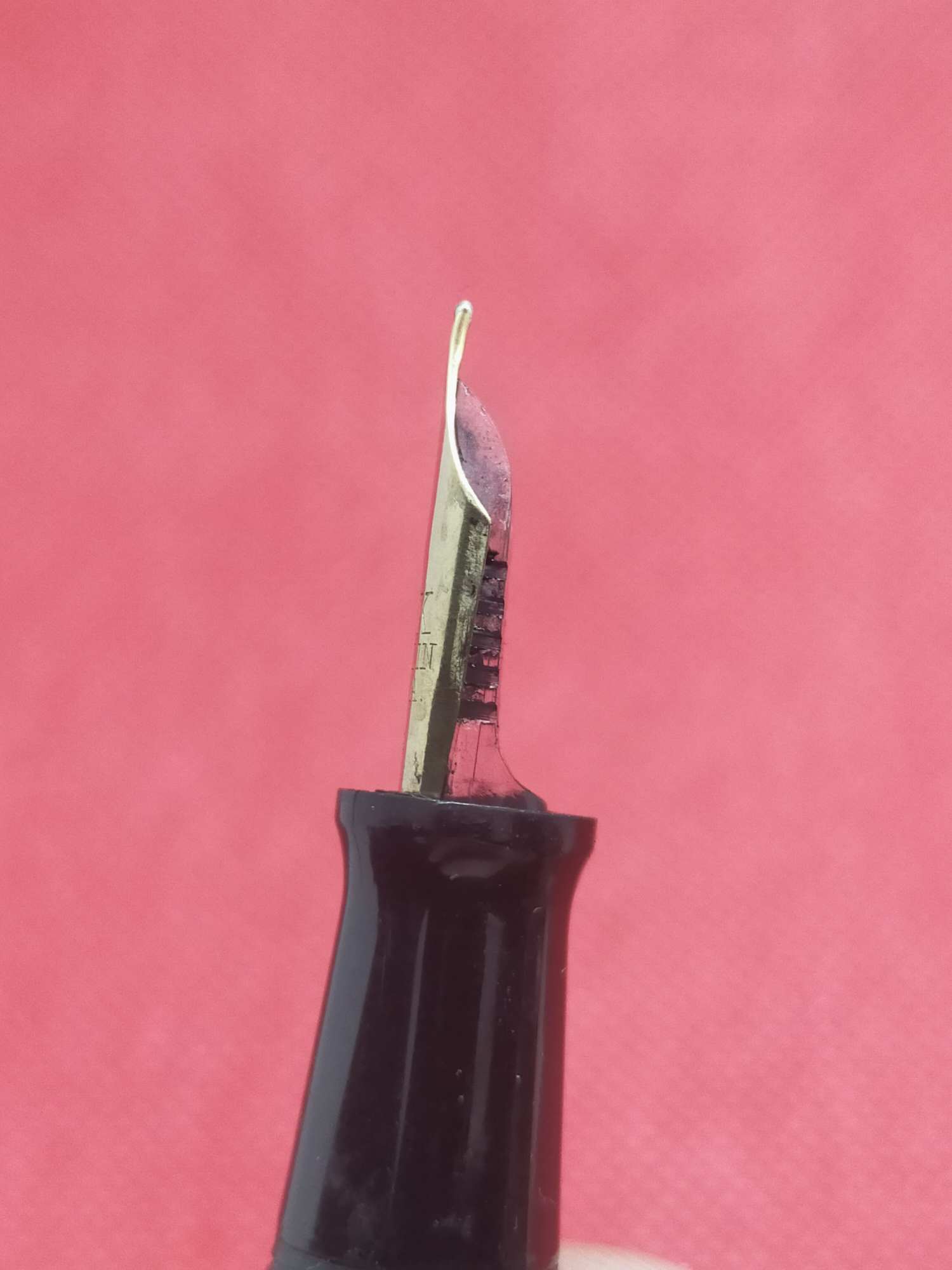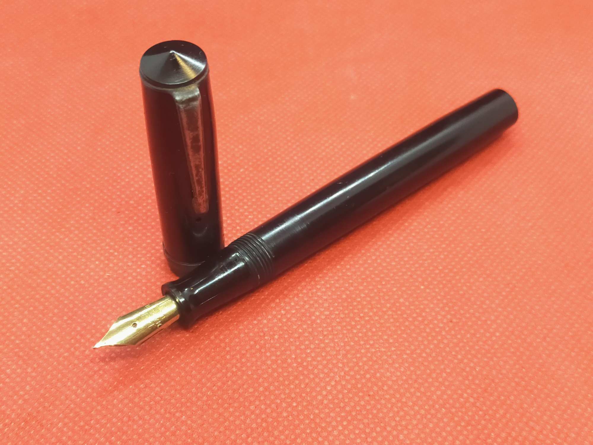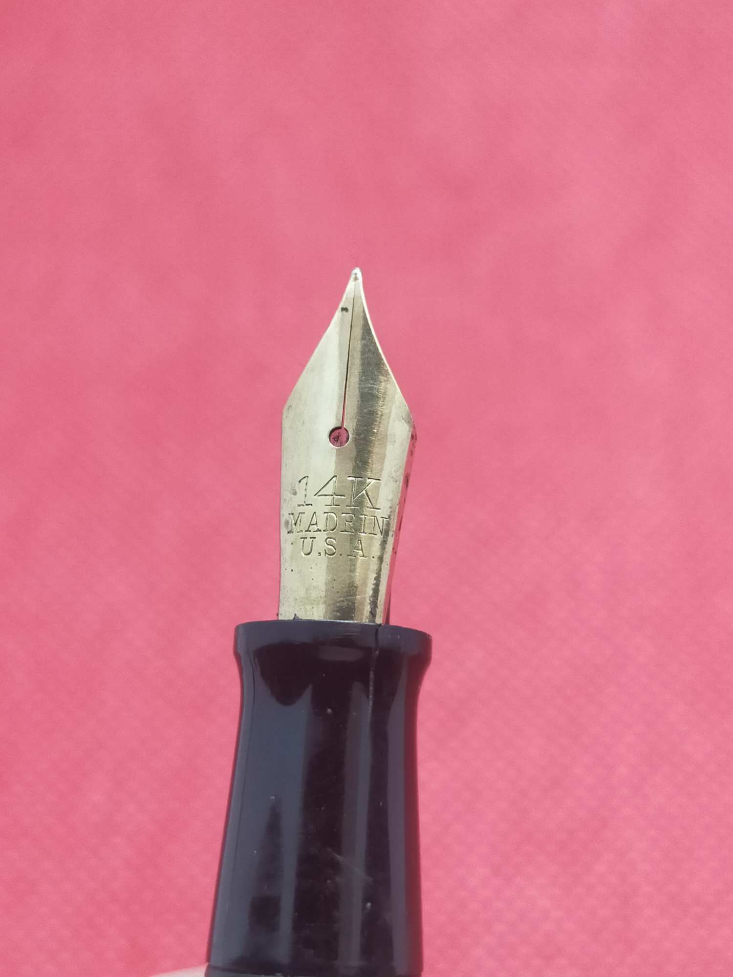 Американская ручка 1940-х, средний размер, довольно крупное золотое полугибкое перо F 585 пробы.