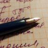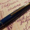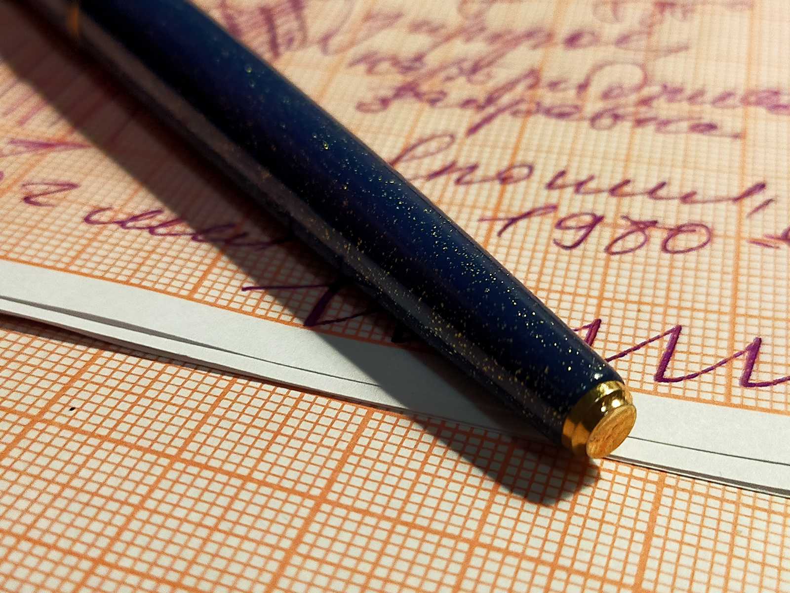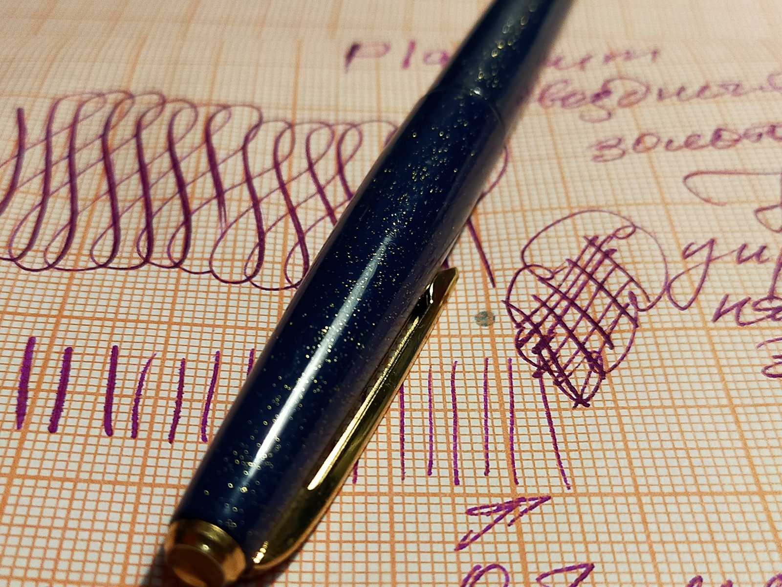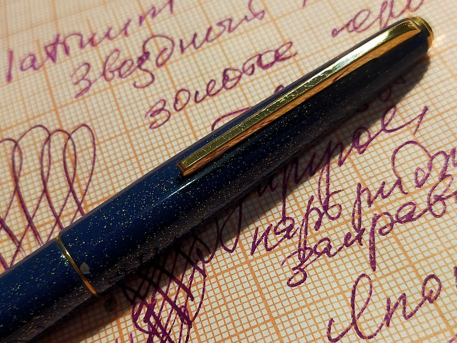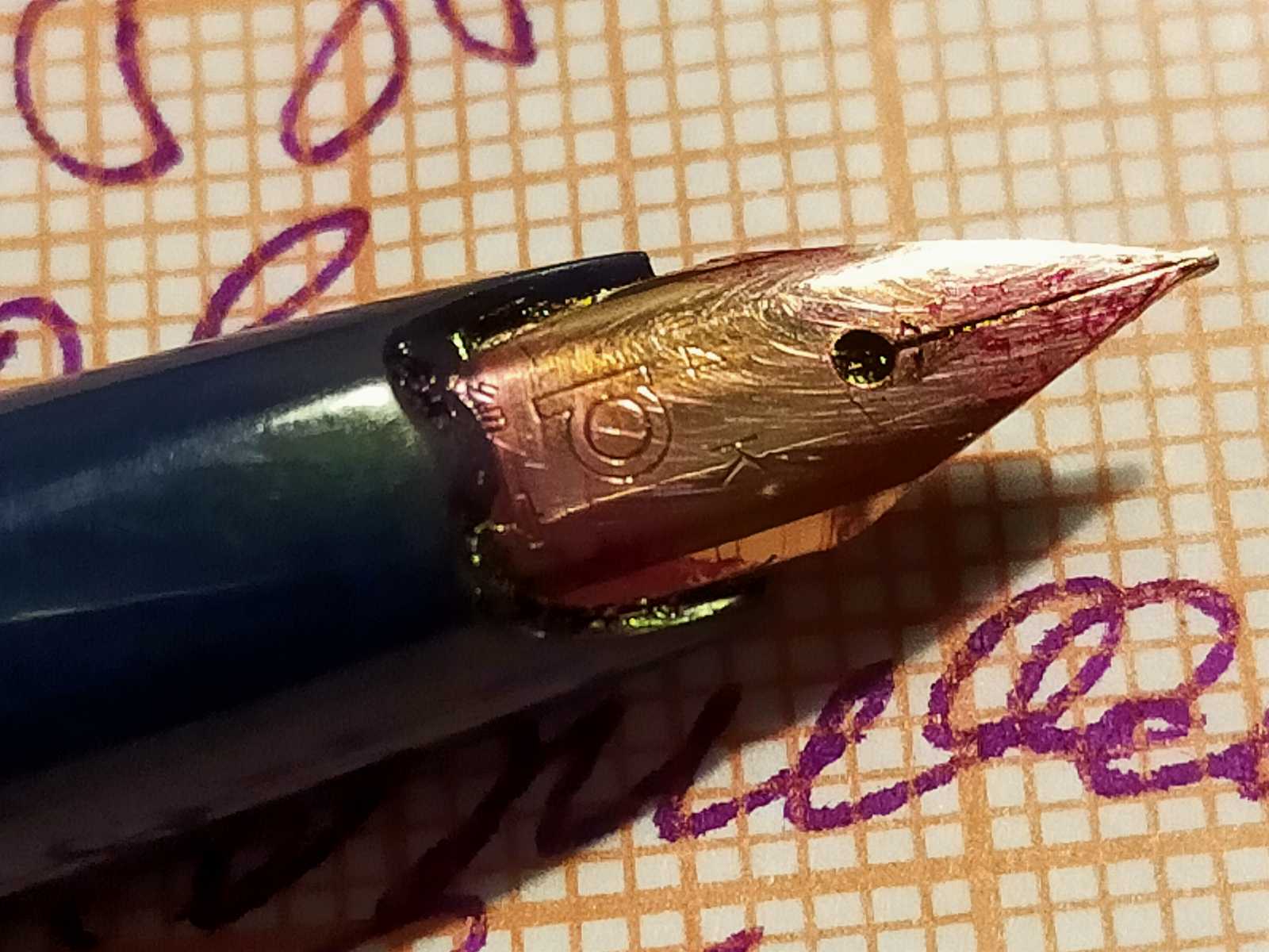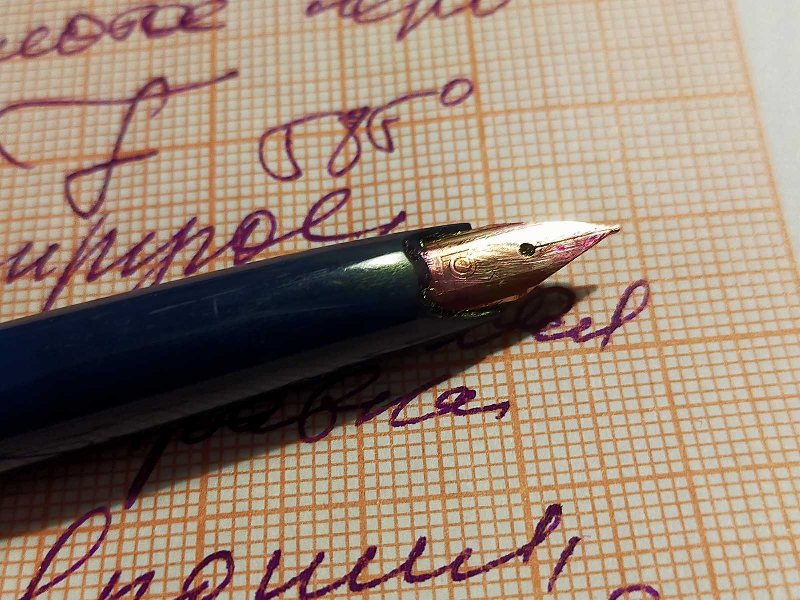 Упругое золотое перо F 585 пробы, Япония, 1980-е годы, есть небольшой дефект лака, см фото