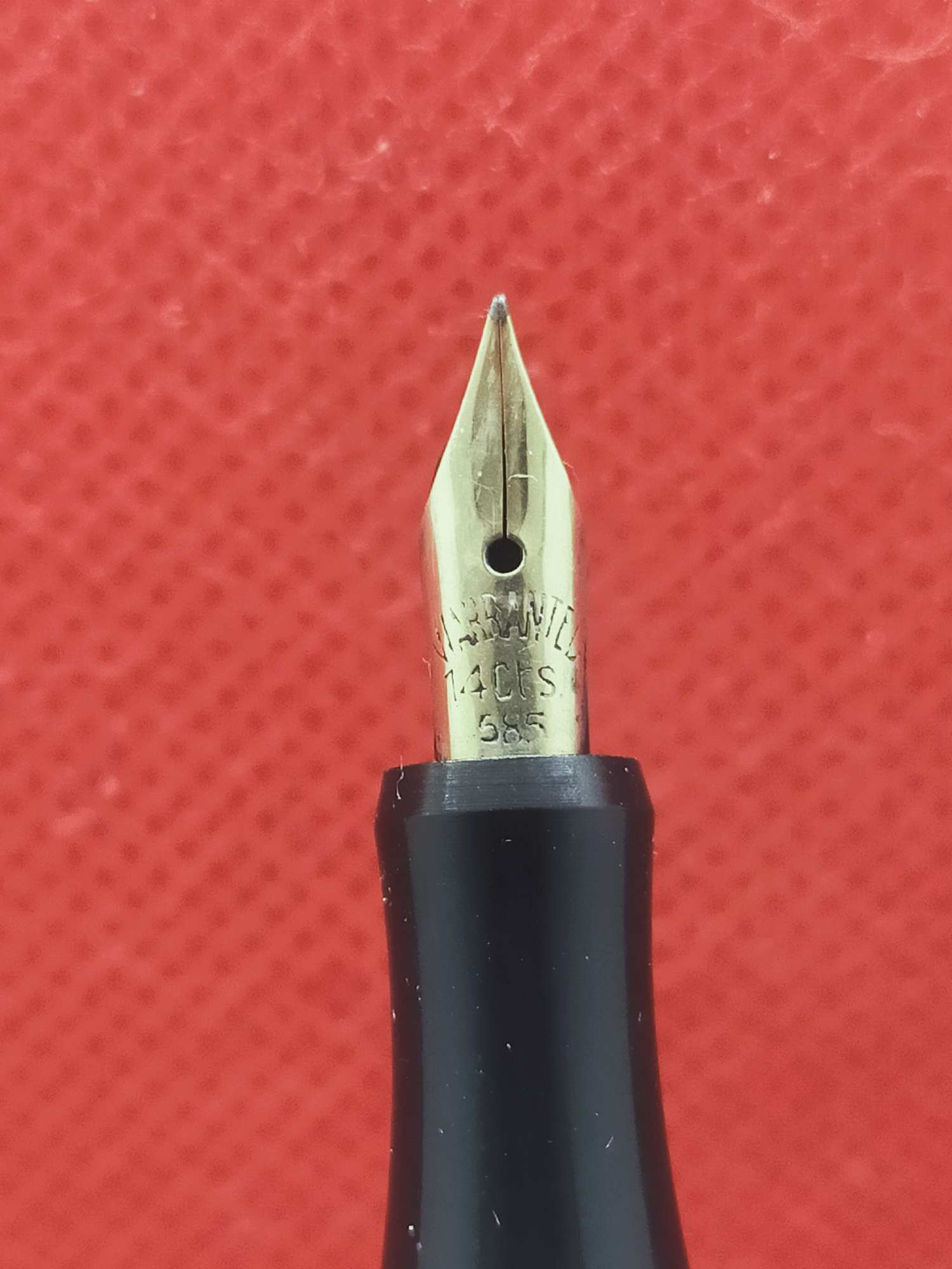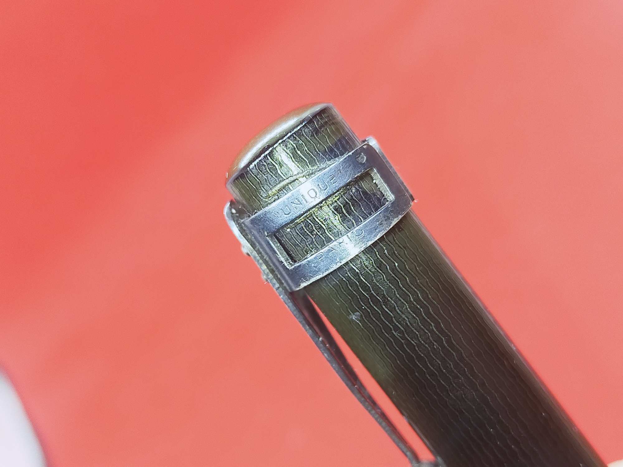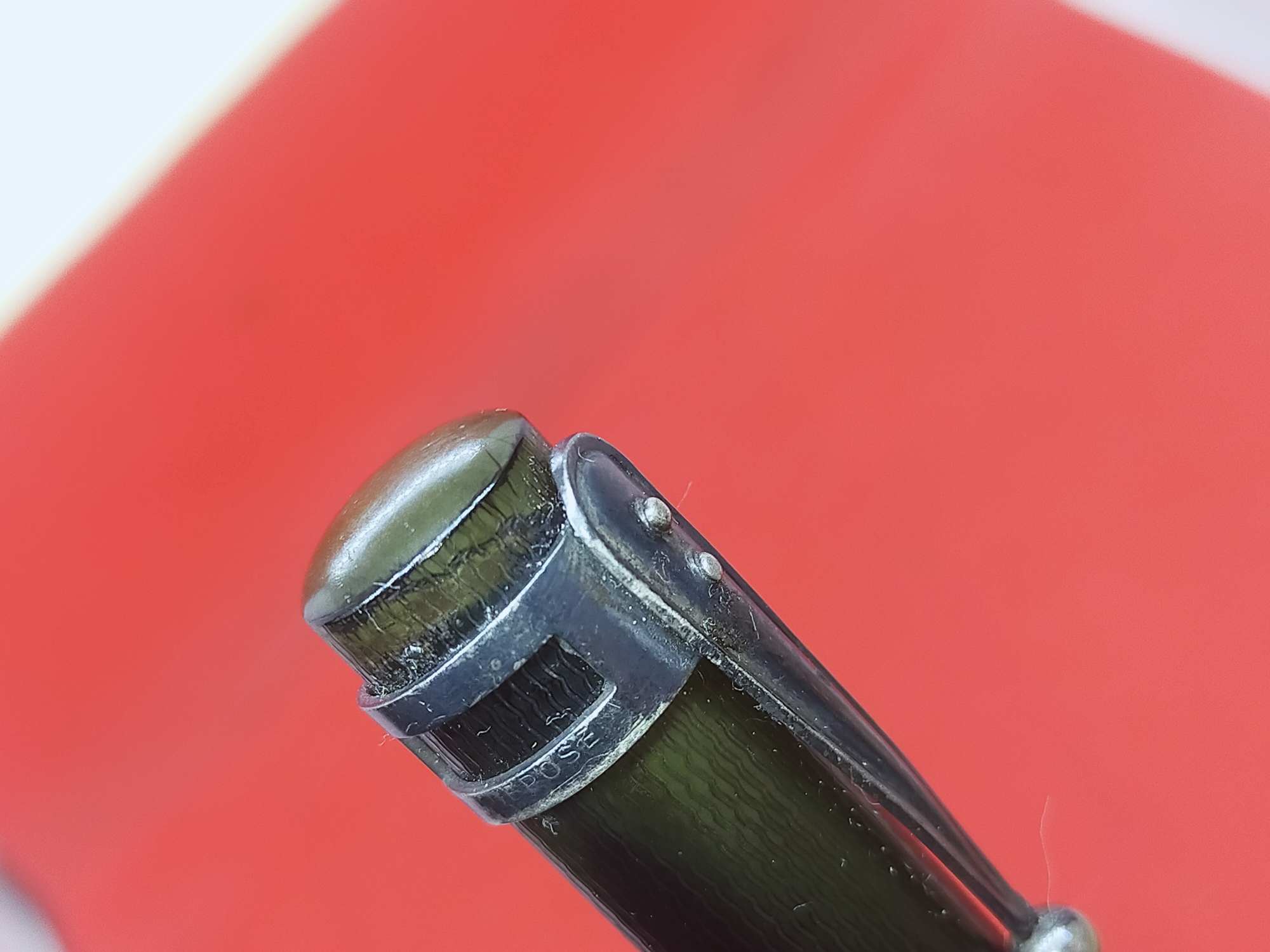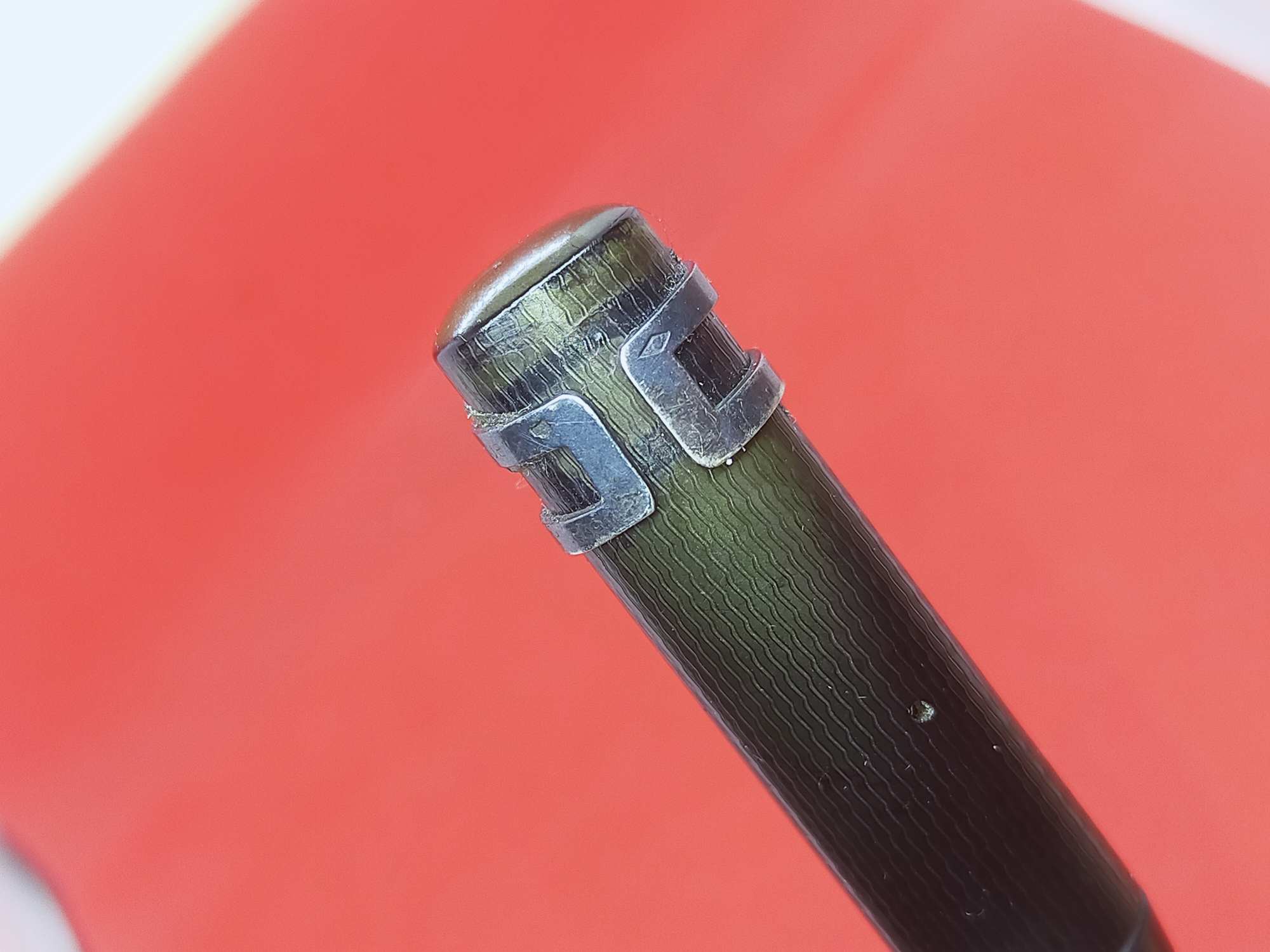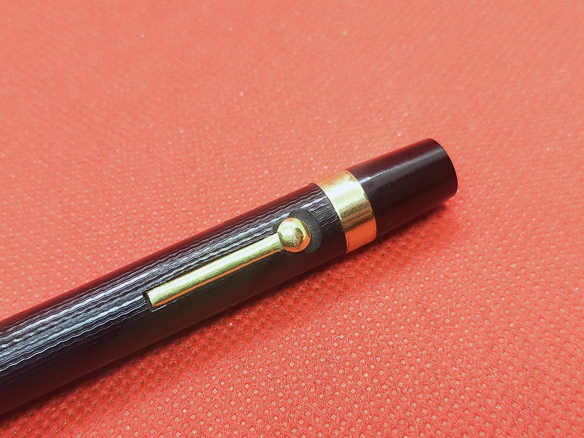 Ручка, предположительно изготовленная на базе Conway Stewart для экспорта во Францию в 1930-х. Серебряный клип с французским клеймом, но перо 585 пробы и надписи все на английском.