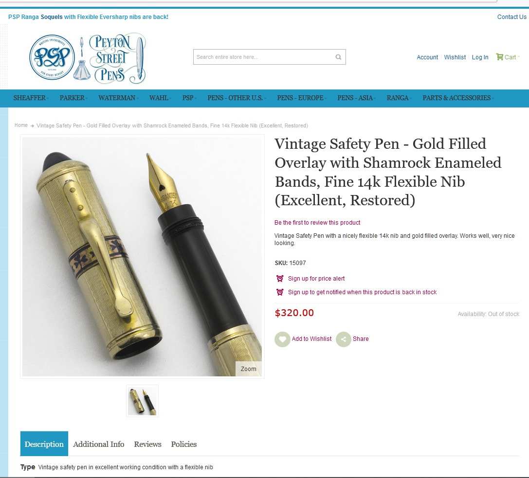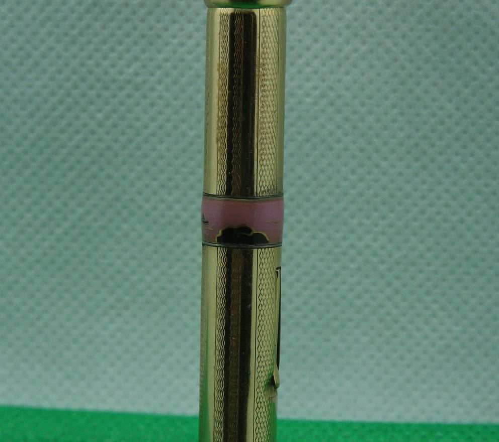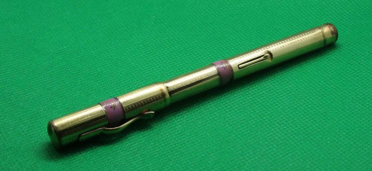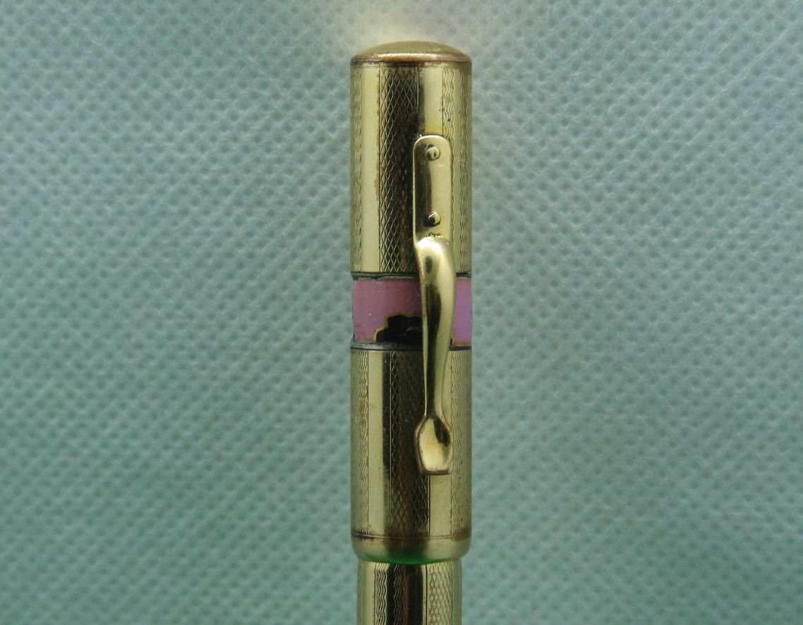Позолоченый корпус двумя эмалевыми «кольцами», гибкое перо F из золота 585 пробы, США 1920-е годы