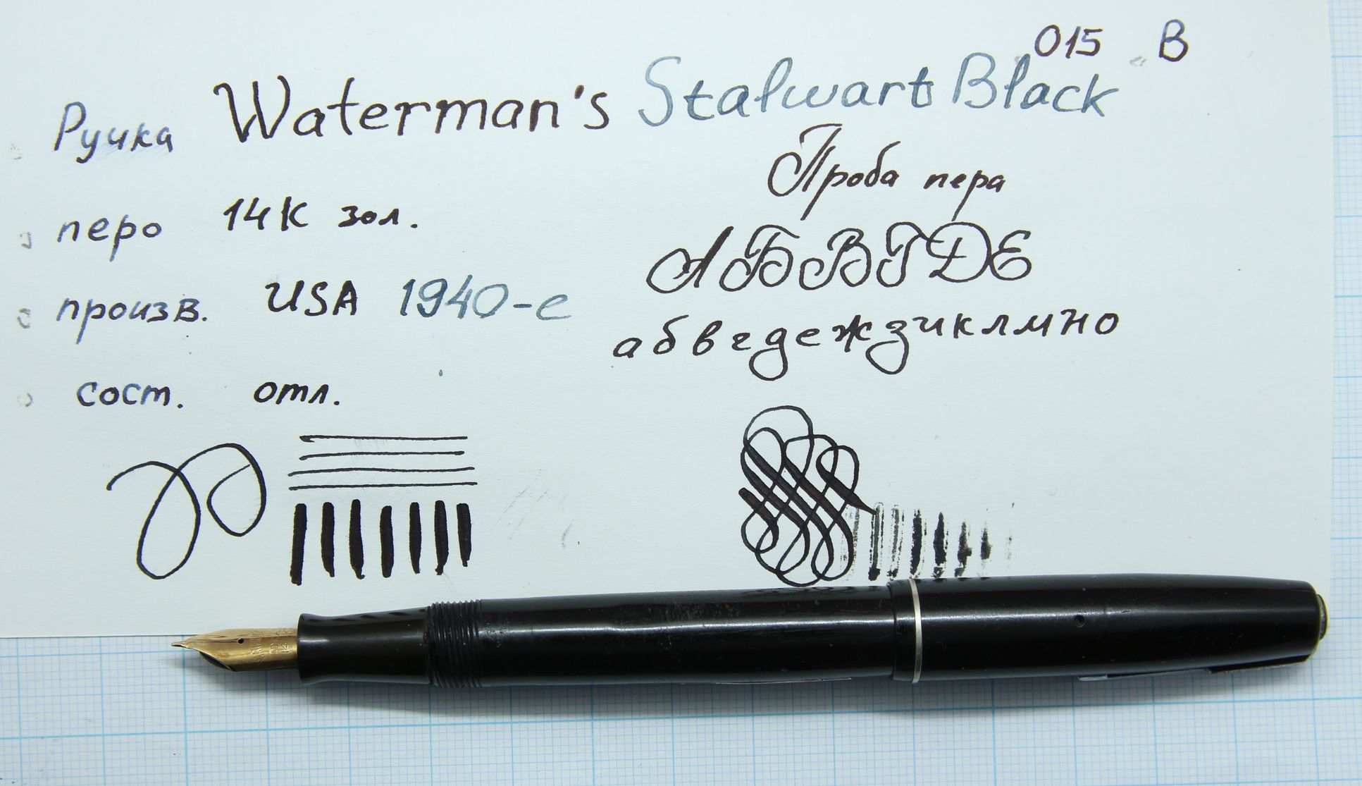Waterman’s Stalwart Black, золотое перо 585 пробы, США 1940-е