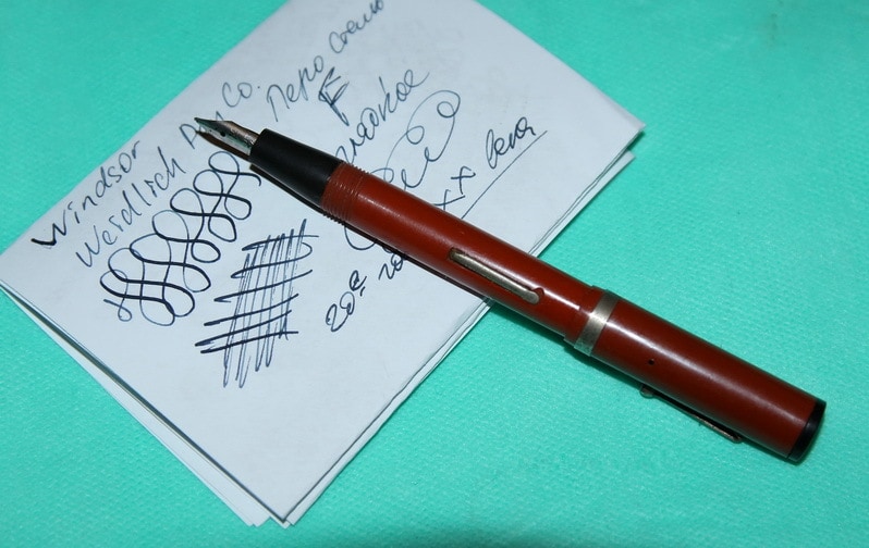 Небольшая ручка жилетного размера с упрагим пером из позолоченной стали.